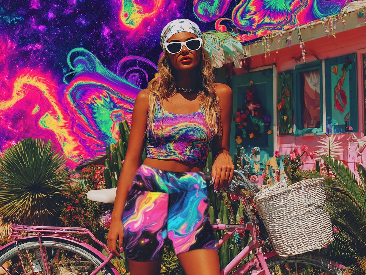Add a splash of color to your next festival fit with these high-waisted swirl print shorts! Designed for ultimate comfort and bold style, these psychedelic shorts are perfect for dancing at EDC, vibing at Electric Forest, or lounging in colorful rave fashion. A must-have piece for dopamine dressing lovers and streetwear queens.