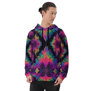 Wrap yourself in electric vibes ⚡️ This psychedelic neon hoodie is the ultimate statement piece for ravers, festival wanderers, and streetwear lovers who crave bold energy and eye-catching color. Whether you're dancing under lasers or layering up for a night set, this hoodie blends comfort with cosmic vibes.