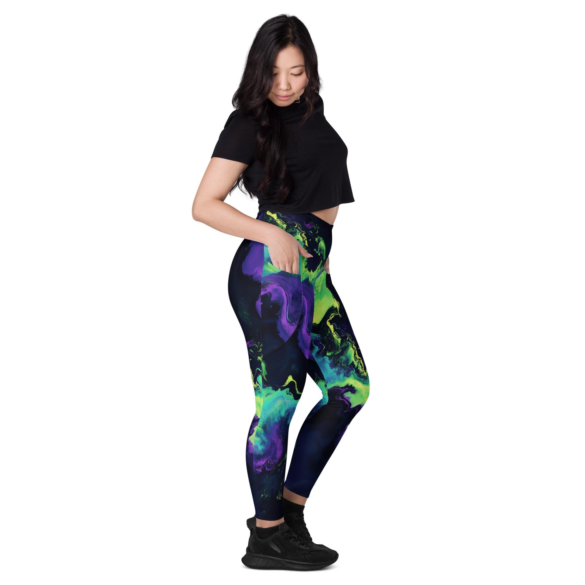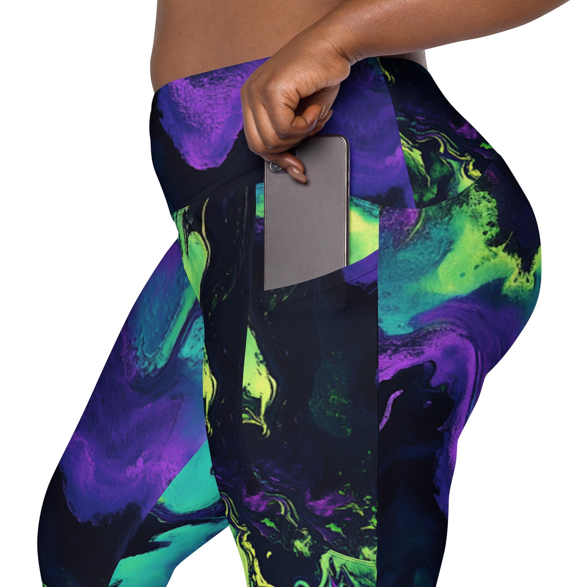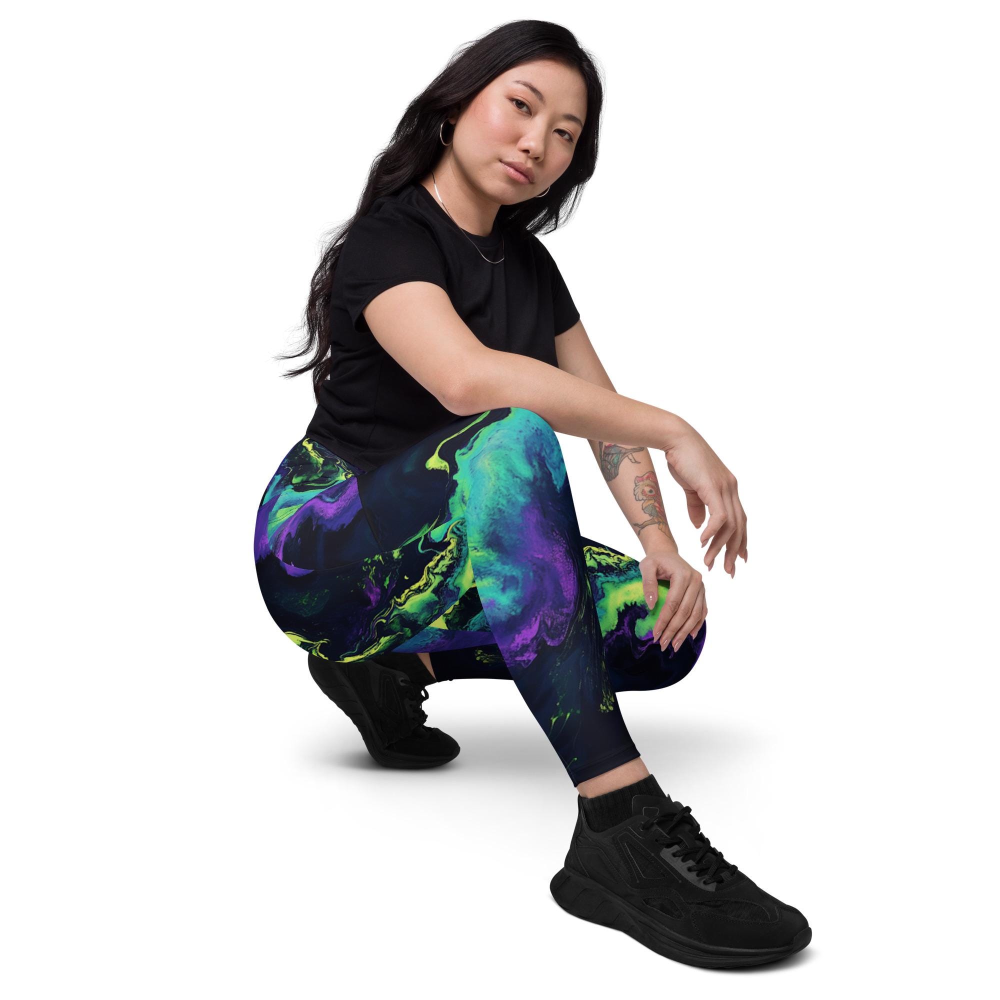 Elevate your activewear collection with these eye-catching Neon Green Purple Leggings with pockets. Designed for both style and functionality, these high-waisted, semi-compression leggings are perfect for workouts, yoga sessions, or casual city strolls. The vibrant neon green and purple marbled pattern adds a bold pop of color to any outfit, making you stand out wherever you go.