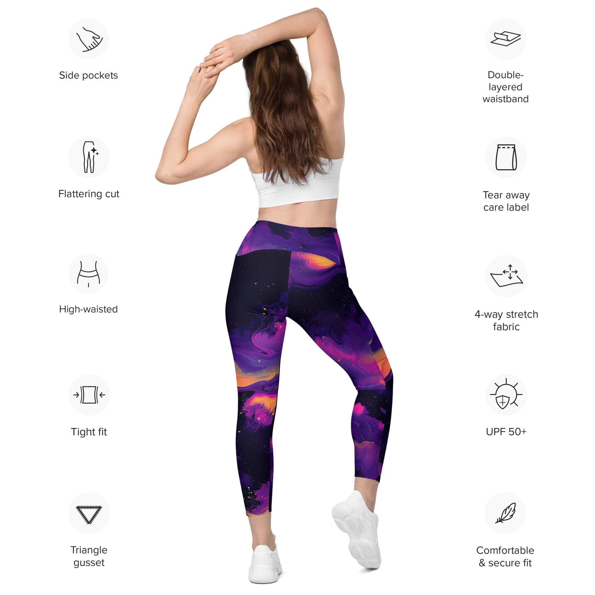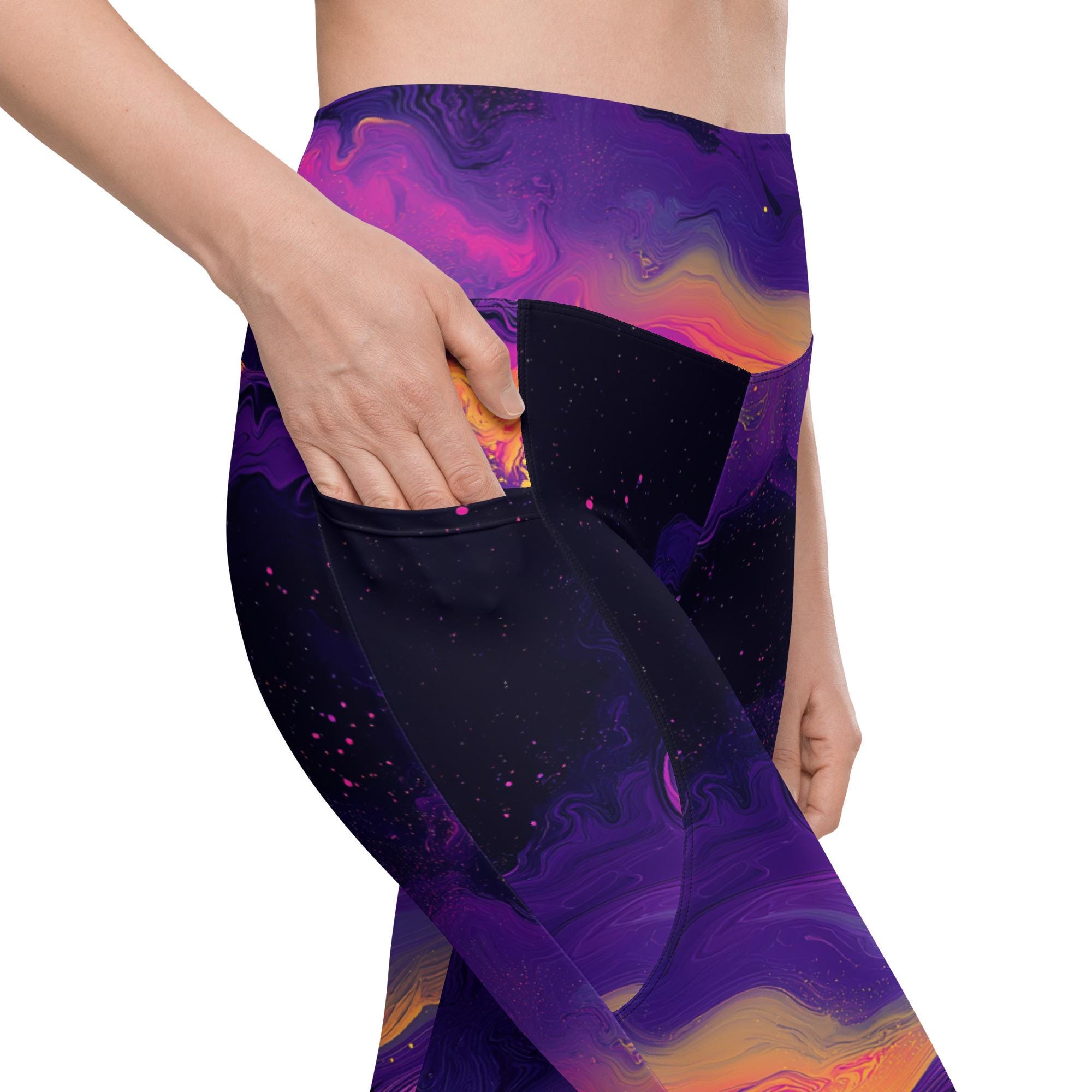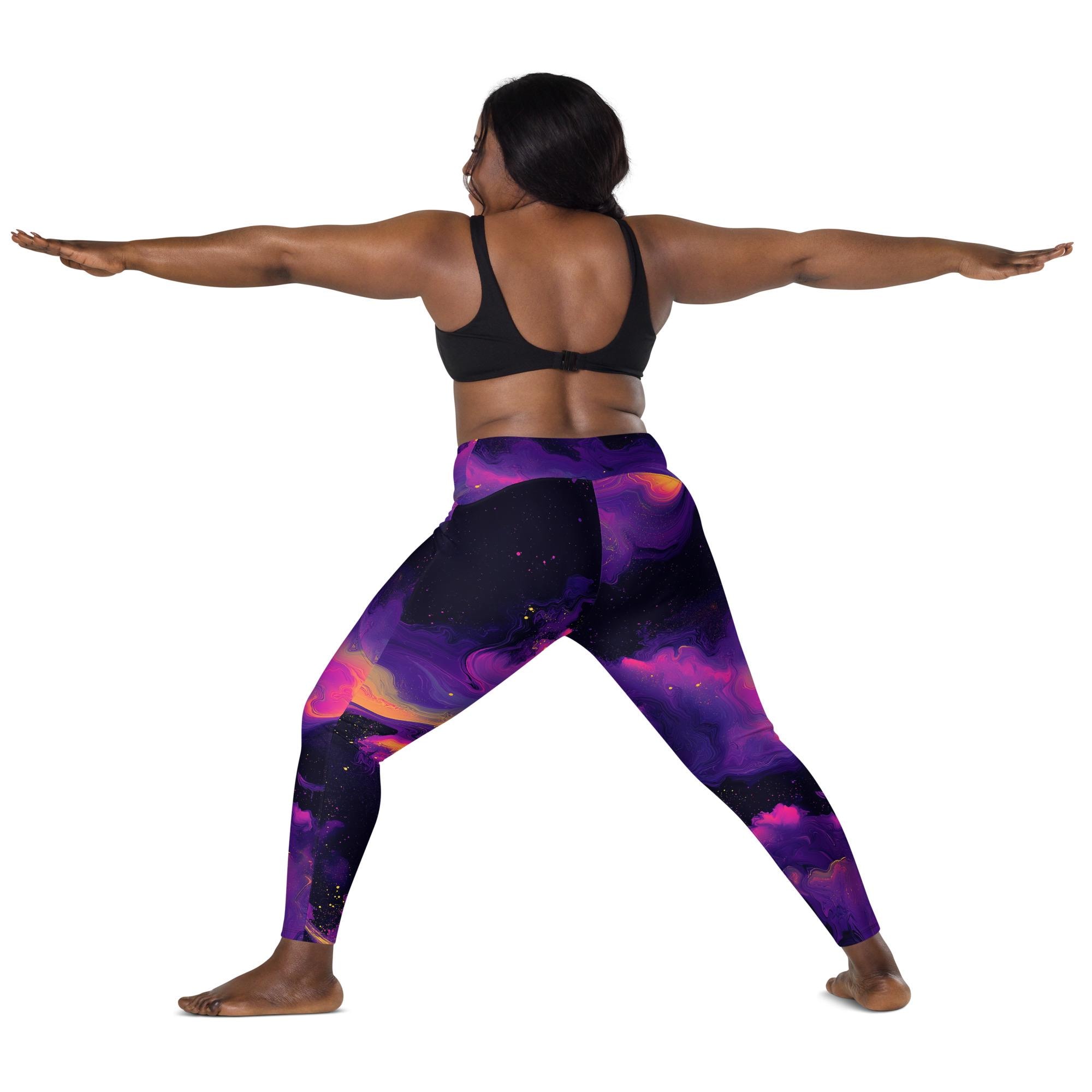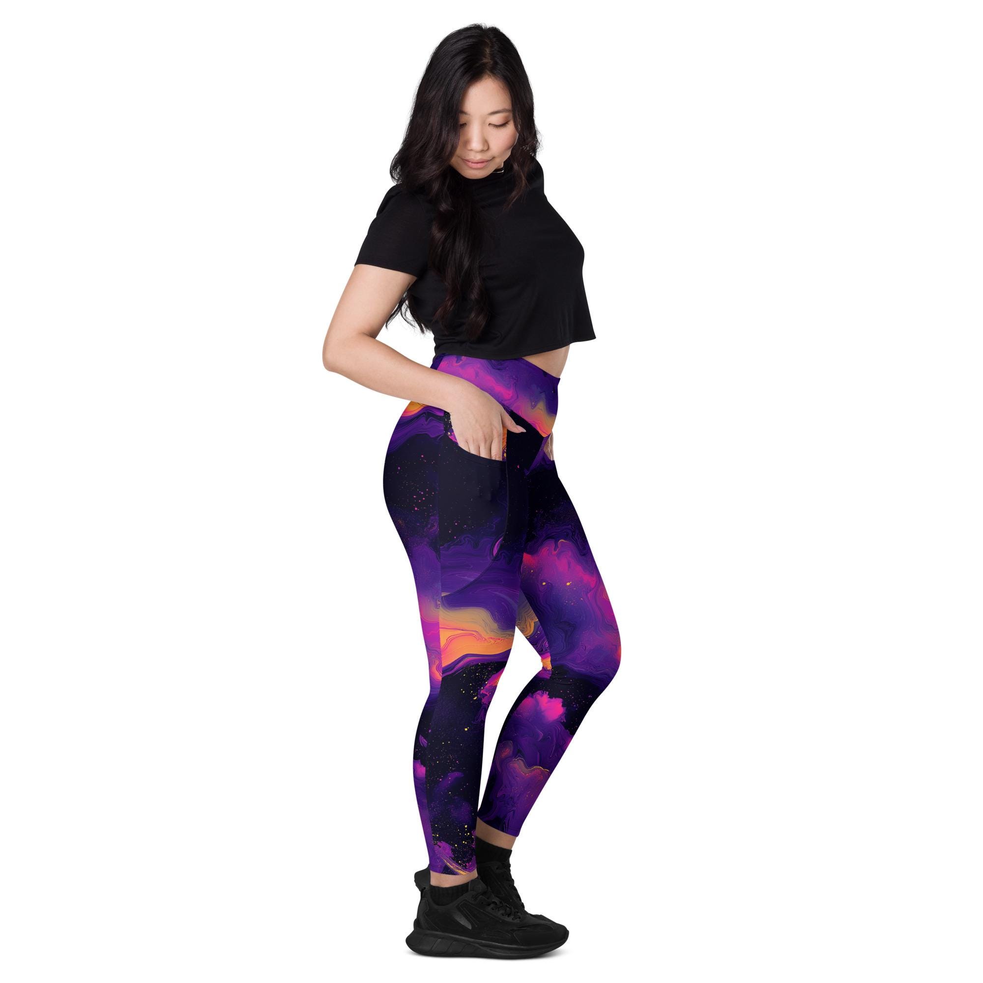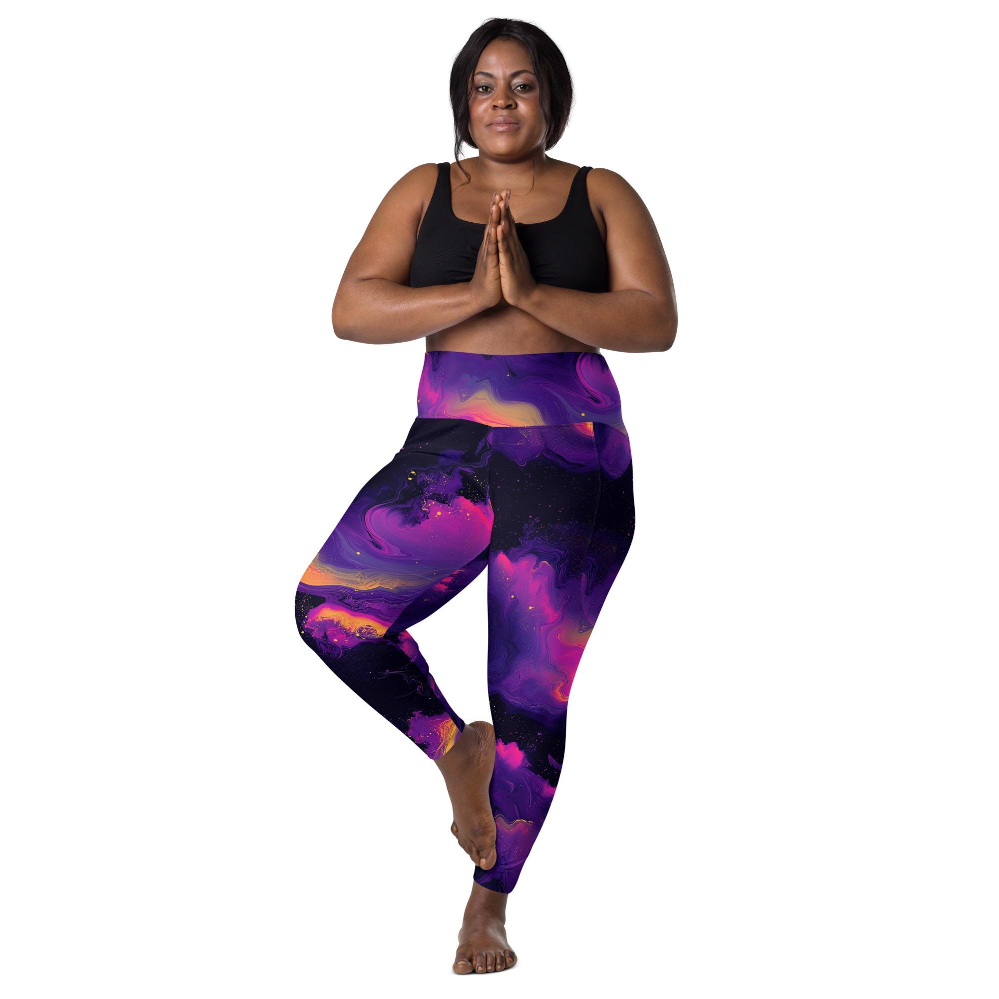 Elevate your activewear collection with these vibrant Pink and Purple Leggings with pockets, designed to combine style, comfort, and practicality. Perfect for workouts, casual outings, or running errands, these high-waisted leggings feature a bold, eye-catching abstract print that adds a pop of color to any outfit. The classic high-rise cut provides excellent support and a flattering silhouette, while the soft, stretchy fabric offers a mild compression feel for all-day comfort.