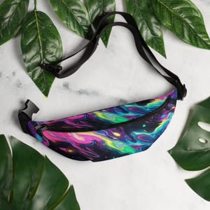 Add a splash of color to your festival, travel, or everyday style with this vibrant Rainbow Paint Pour Fanny Pack. Designed for both function and fashion, this water-resistant waist bag is perfect for keeping your essentials close while on the move. Whether you're heading to a music festival, exploring a new city, or just want a hands-free accessory that stands out, this small but spacious fanny pack has you covered.