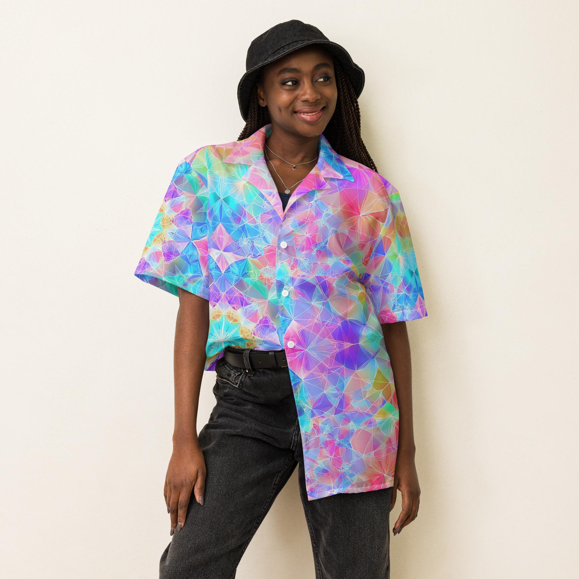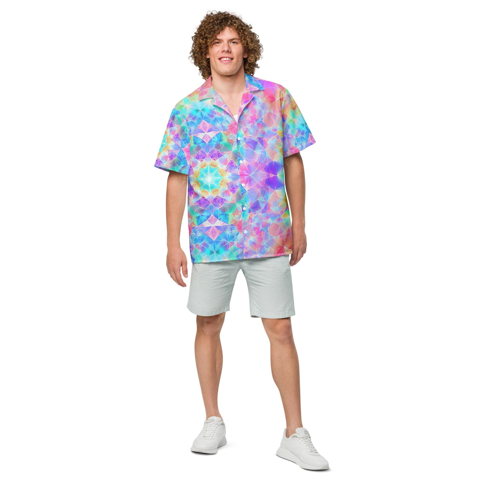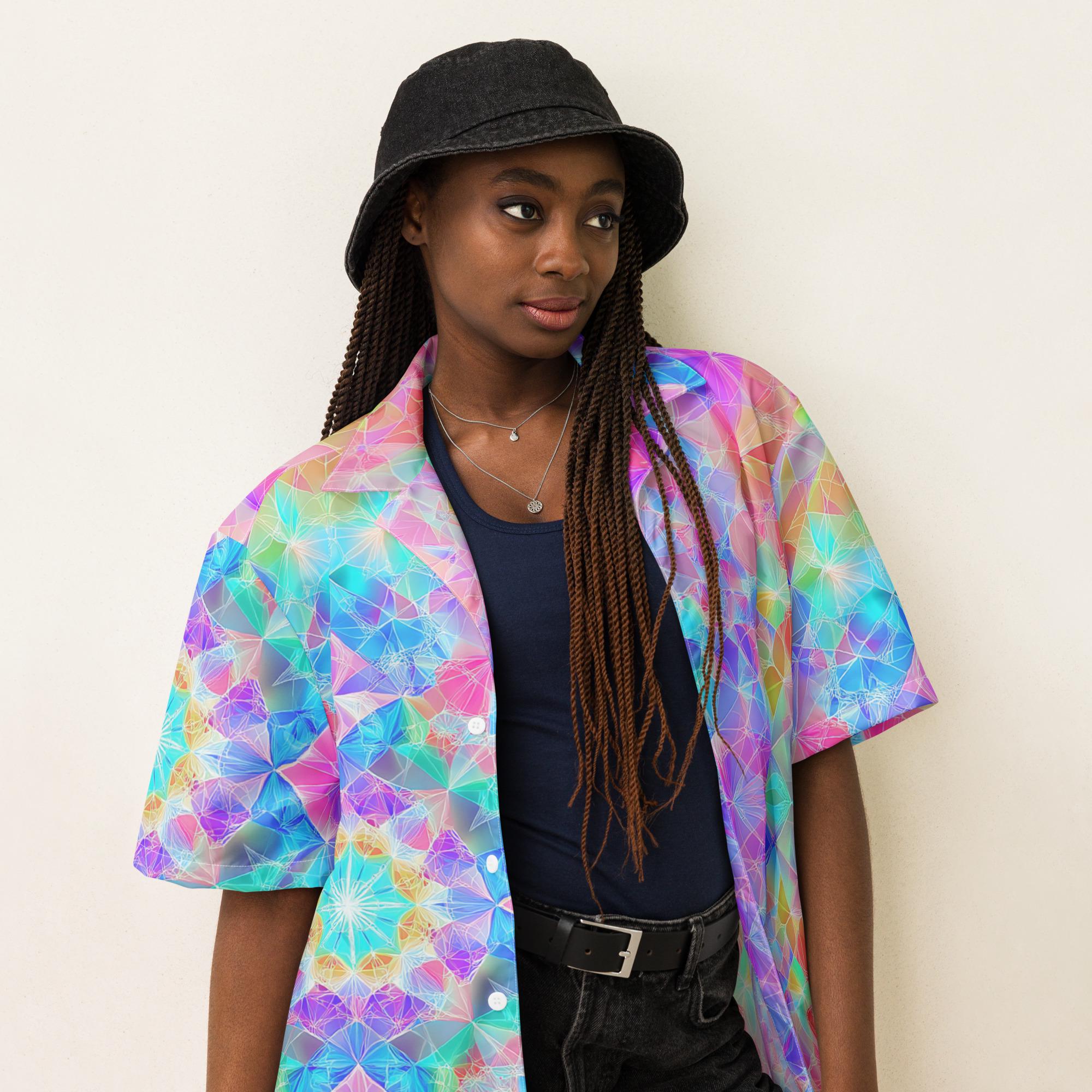 Discover the ultimate summer statement piece with our Fractal Shirt, perfect for rave festivals, music gatherings, or any vibrant occasion. Designed as a unisex oversized button-up, this psychedelic rave outfit combines eye-catching style with unbeatable comfort. Its mesmerizing fractal and psychedelic print make it a standout addition to your festival wardrobe, ensuring you shine brightly wherever you go.
