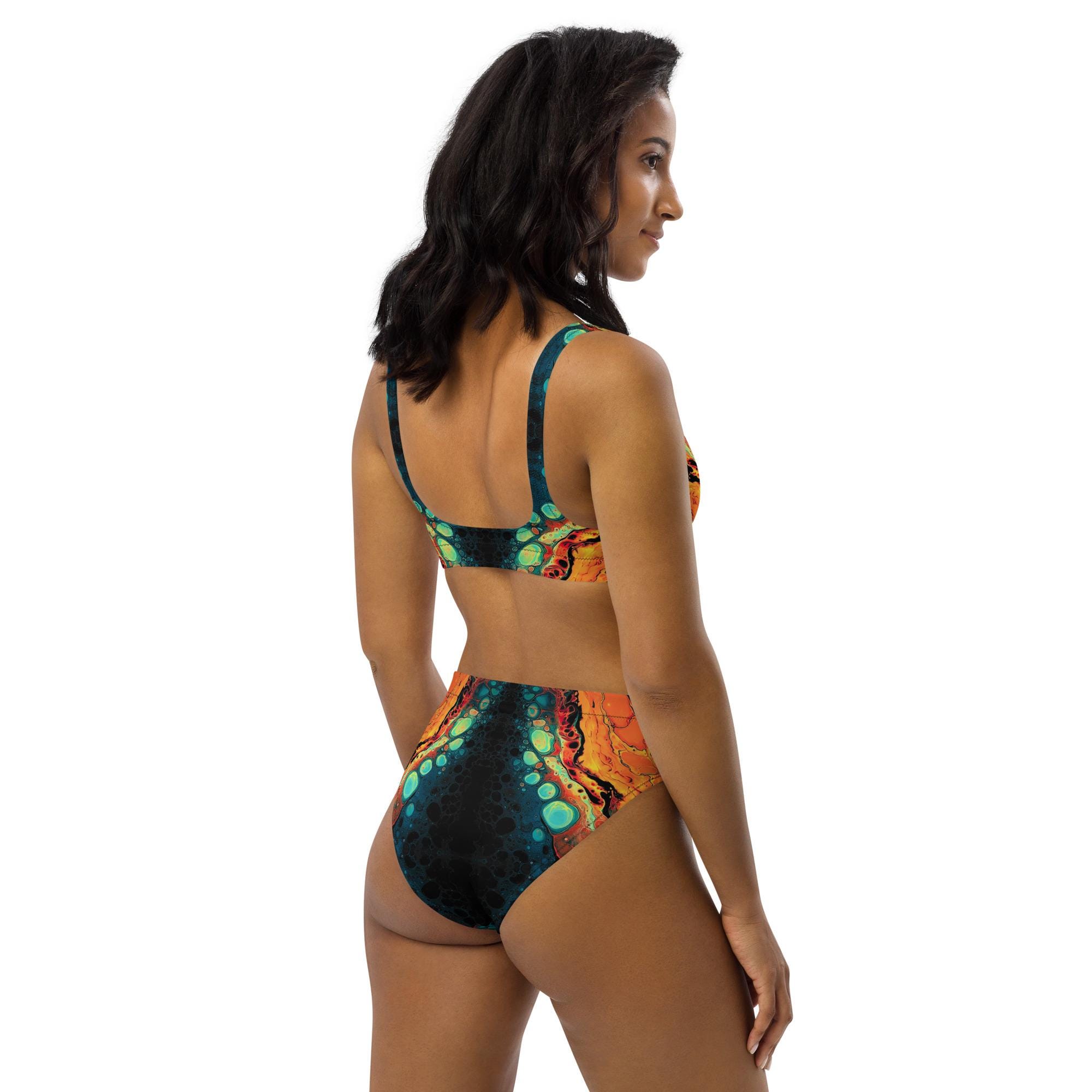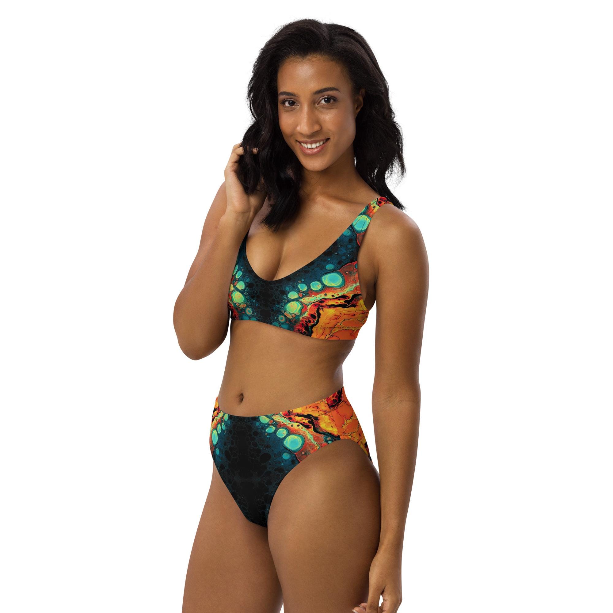 Elevate your rave wardrobe with our Psychedelic Lava Bikini, a stunning high-waisted outfit designed for those who want to make a bold statement at Lost Lands, Halloween festivals, or any vibrant rave event. Featuring a mesmerizing swirling lava lamp pattern in bold, eye-catching colors, this rave top and bottom set seamlessly blends fun, function, and eco-conscious fashion.