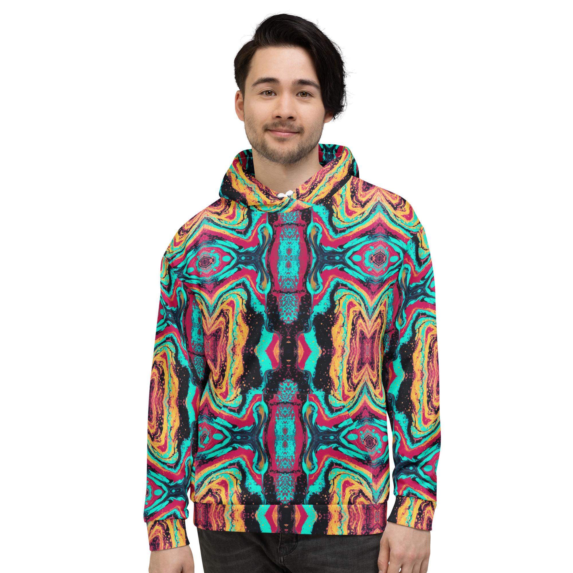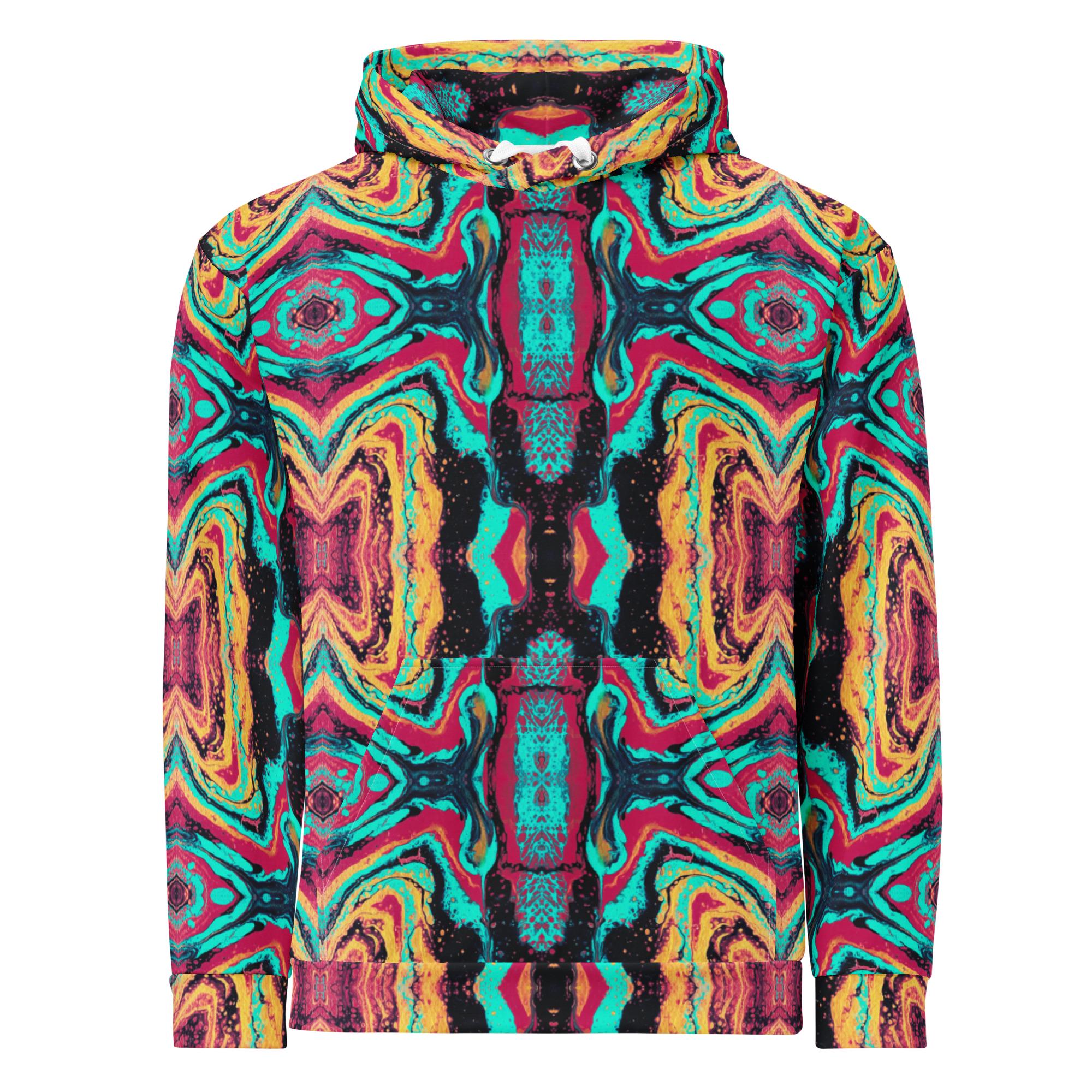 Elevate your wardrobe with this eye-catching, sustainable hoodie—your new favorite for bold, psychedelic fashion that’s as eco-conscious as it is stylish.