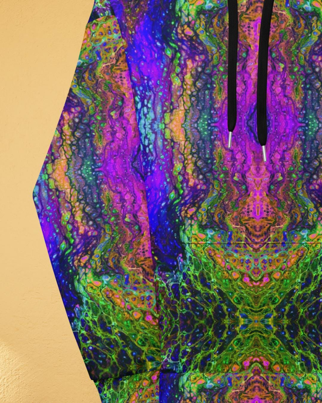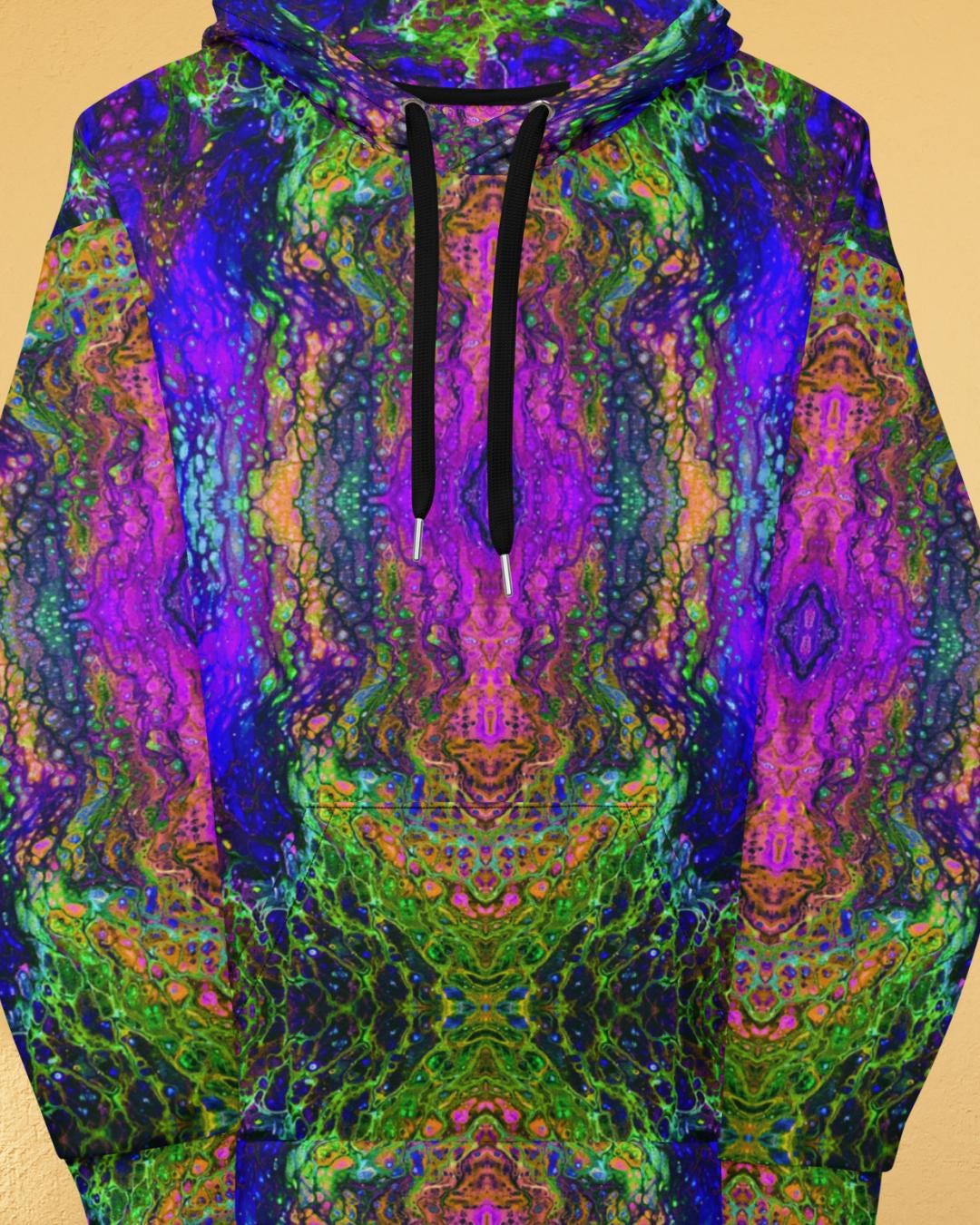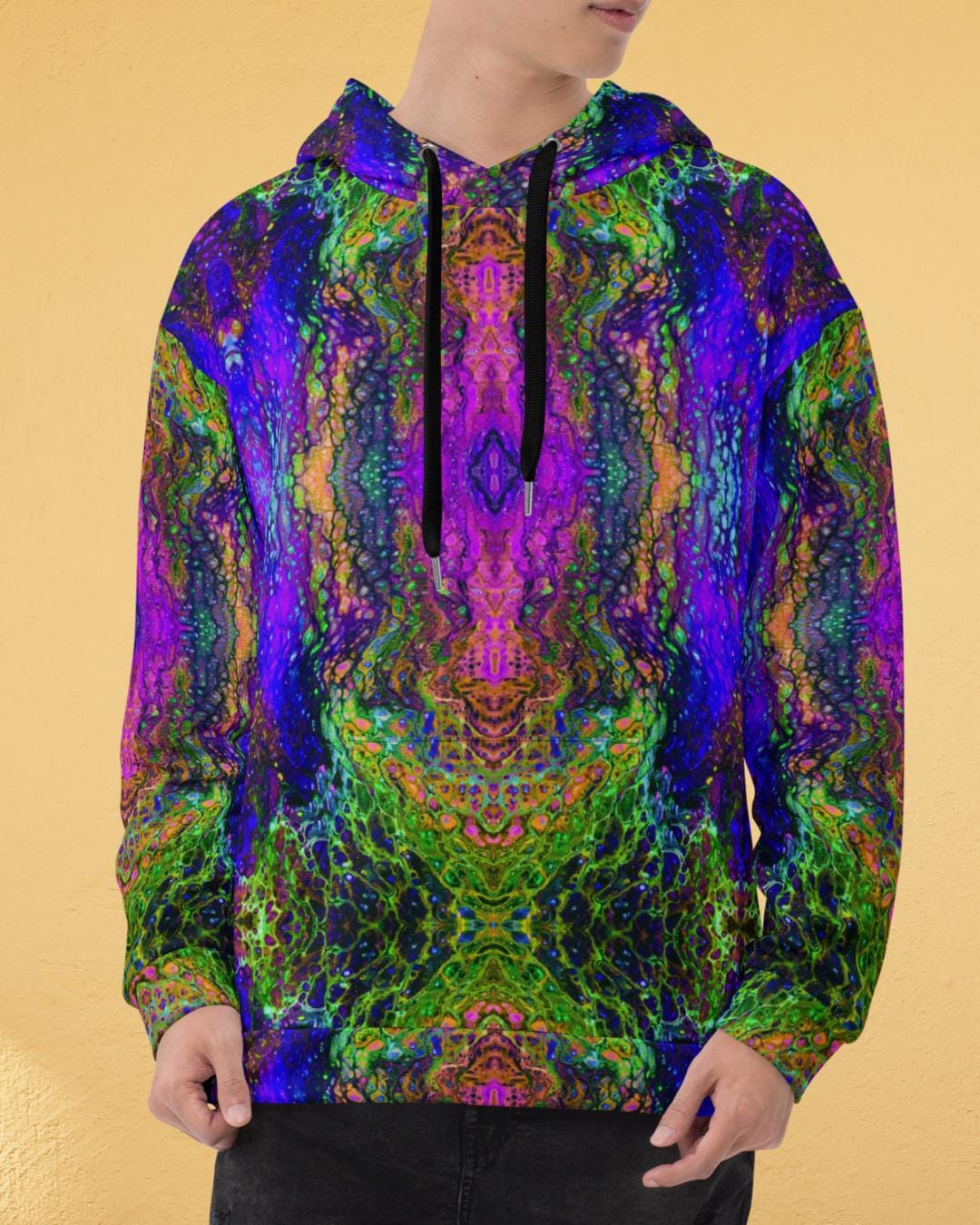 Care instructions: Machine wash cold, tumble dry low, do not bleach. Embrace the trippy vibe and elevate your wardrobe with this unique, artistic hoodie that’s as sustainable as it is stylish.