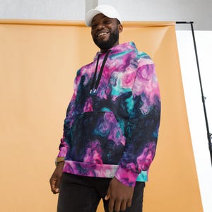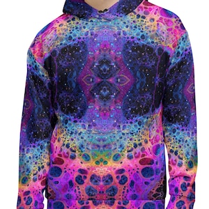 🌌 Design Story: Inspired by fluid acrylic art and the movement of light across color — every pattern flows like energy, making each sweatshirt feel alive.