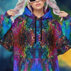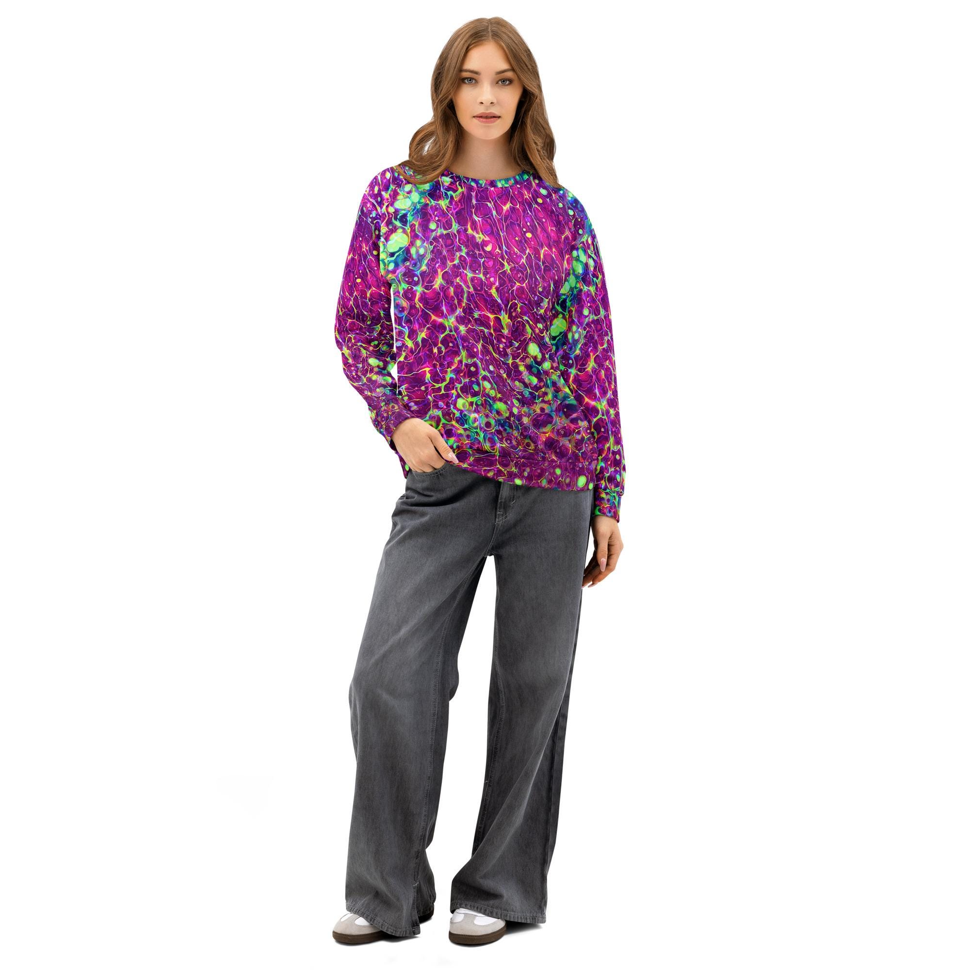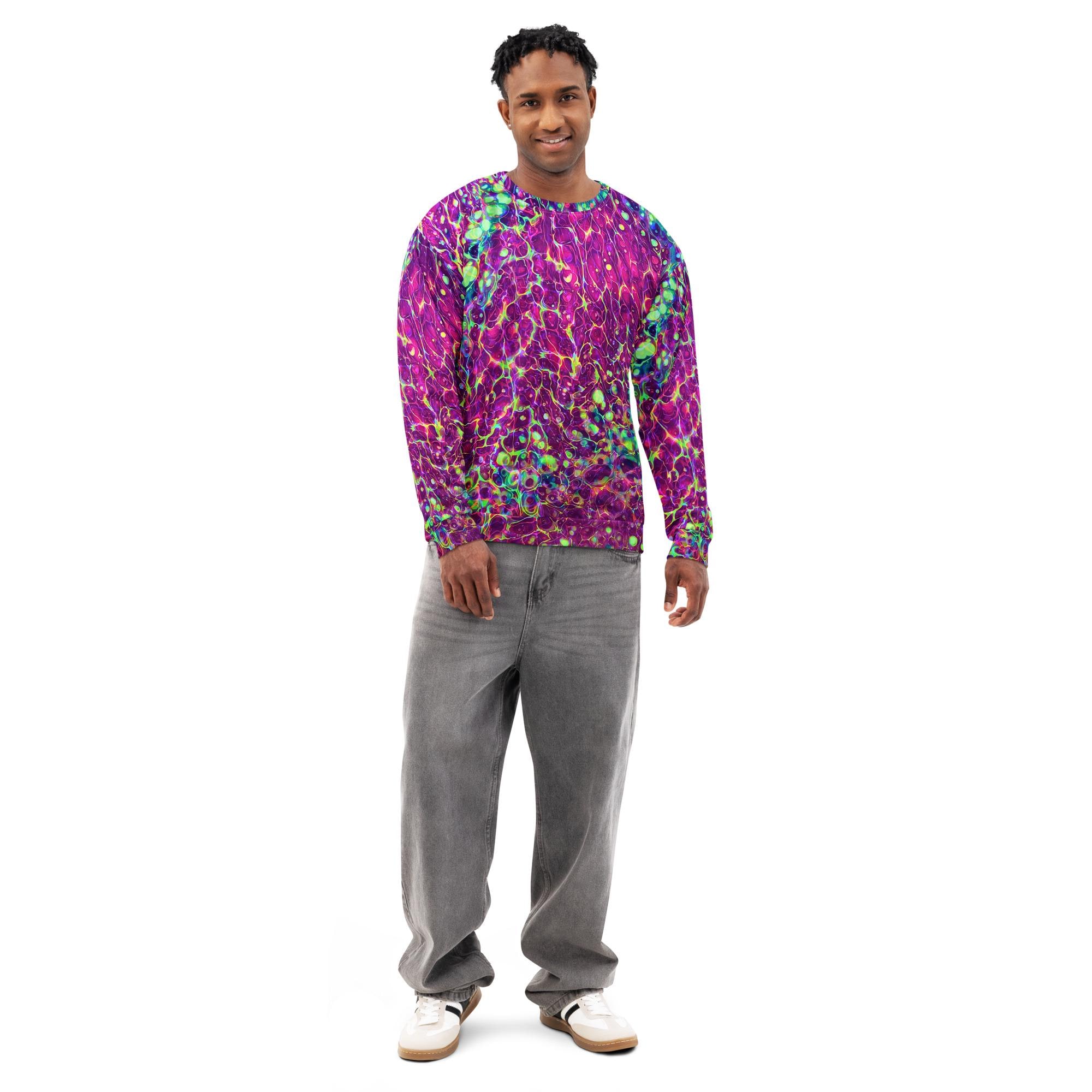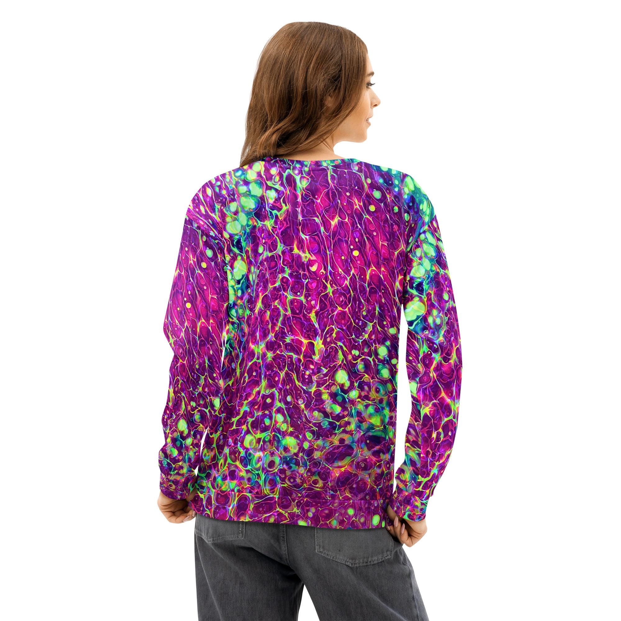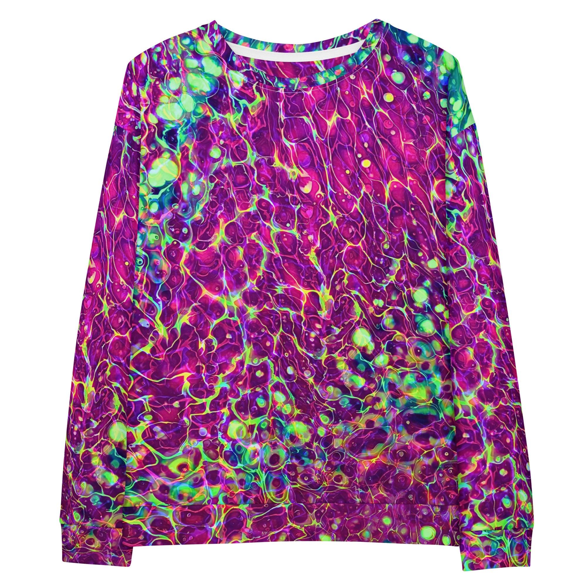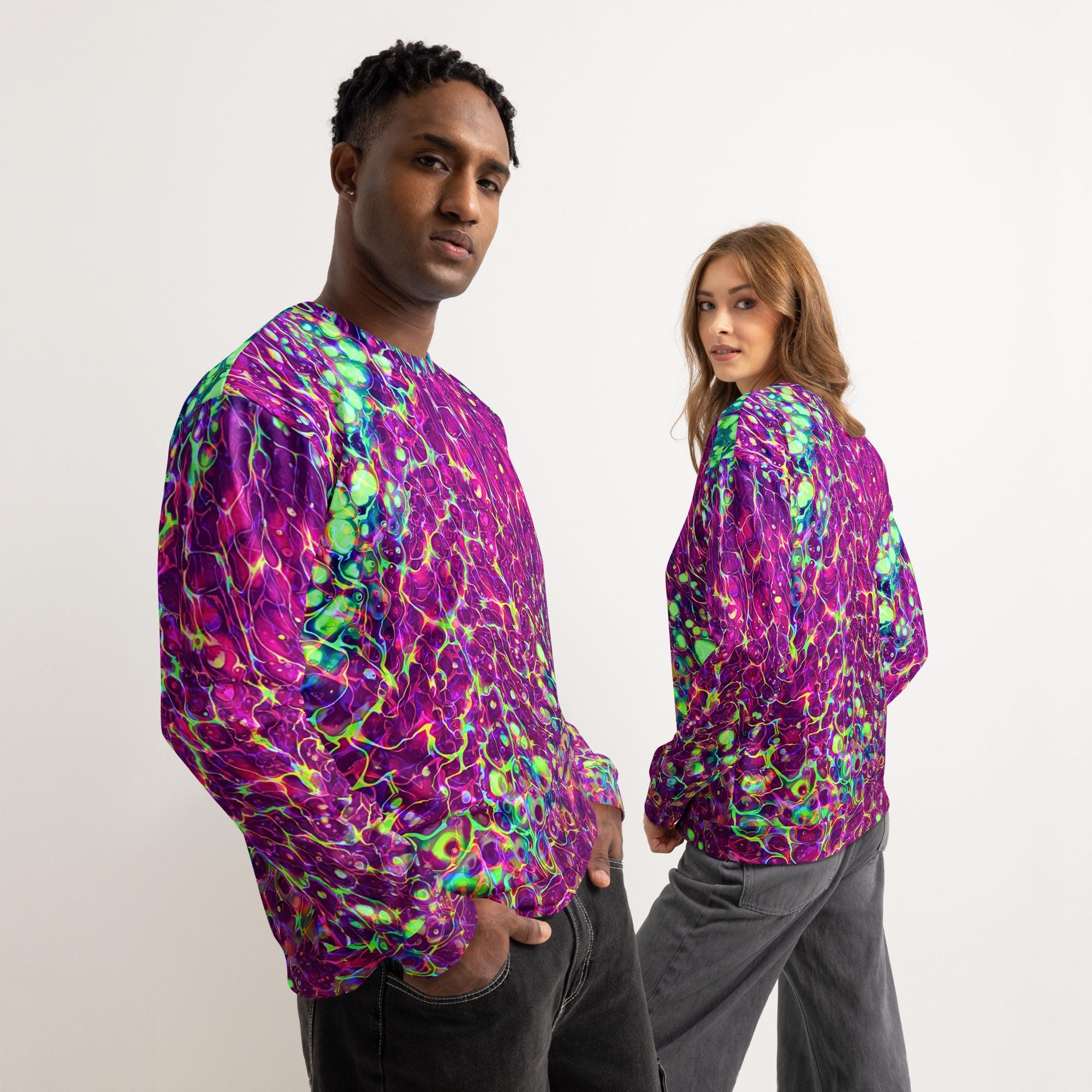 Turn up the color. This neon psychedelic pullover sweatshirt is where comfort meets creativity — a vivid swirl of magenta, lime, and electric blue designed to catch light and energy from every angle. Perfect for dancers, dreamers, and anyone who lives in color.